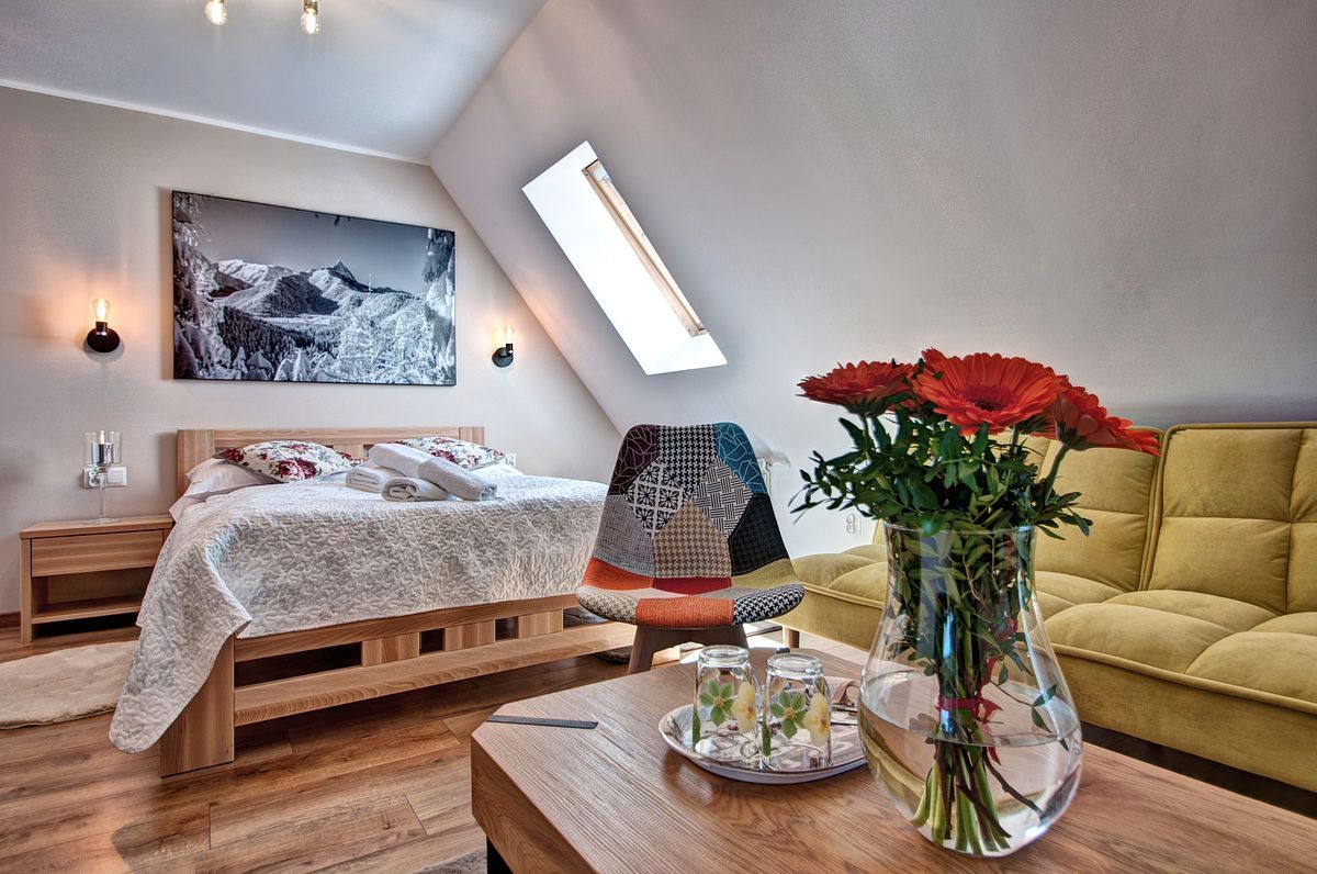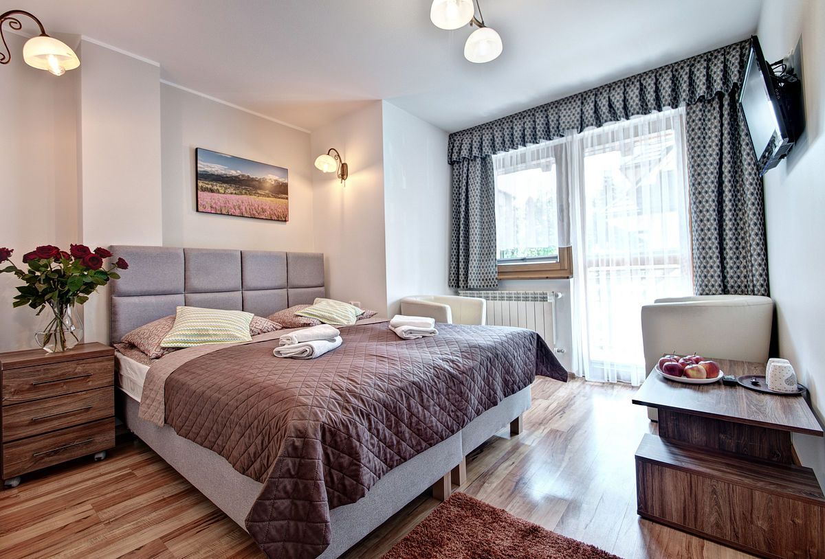 Mamy przyjemność zaproponować Państwu noclegi w Zakopanem. Oferujemy pokoje urządzone ze smakiem, w pięknym, góralskim stylu. Jest też ogólnie dostępne Wi-Fi. Niebywałym atutem naszego pensjonatu w Zakopanem jest jego położenie zaraz przy centrum, skąd można łatwo dostać się busami na wybrane szlaki, czy wybrać się do jednej z klimatycznych karczm na Krupówkach.